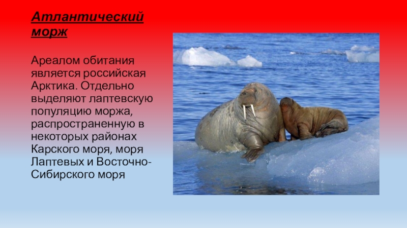 моржа, распространенную в некоторых районах Карского моря, моря Лаптевых и Восточно-Сибирского моря