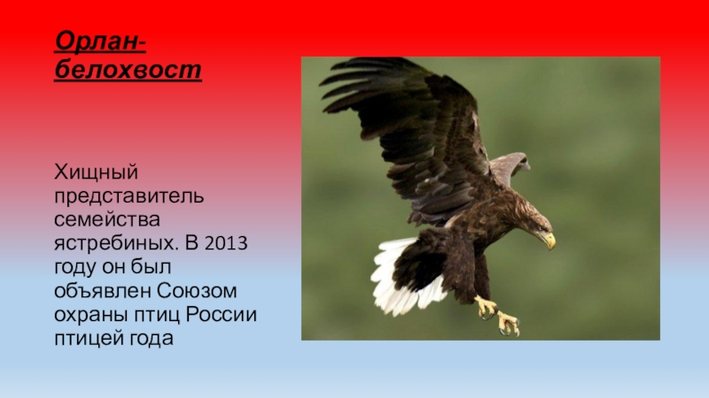 Хищный представитель семейства ястребиных. В 2013 году он был объявлен Союзом