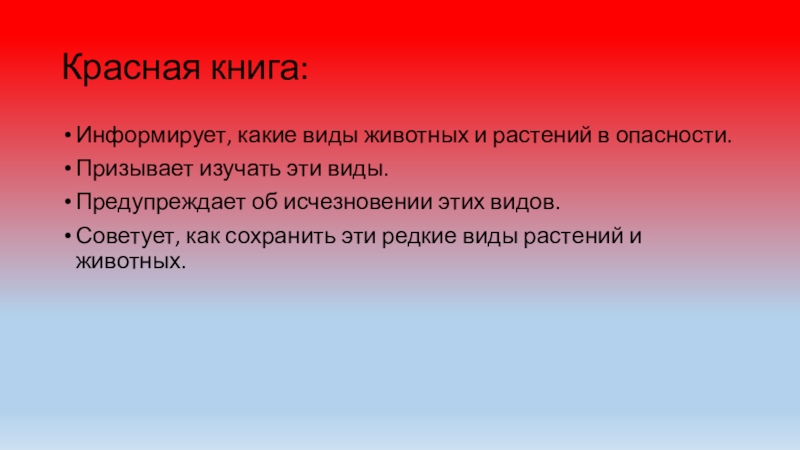На зеленых листах — сведения о восстановленных видах и находящихся вне опасности.
