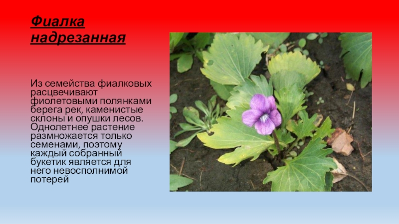 Из семейства фиалковых расцвечивают фиолетовыми полянками берега рек, каменистые