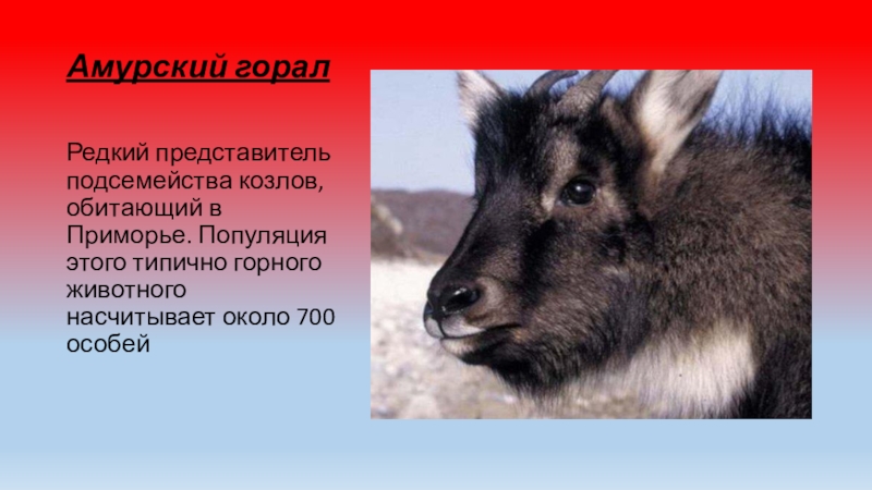 Редкий представитель подсемейства козлов, обитающий в Приморье. Популяция этого типично