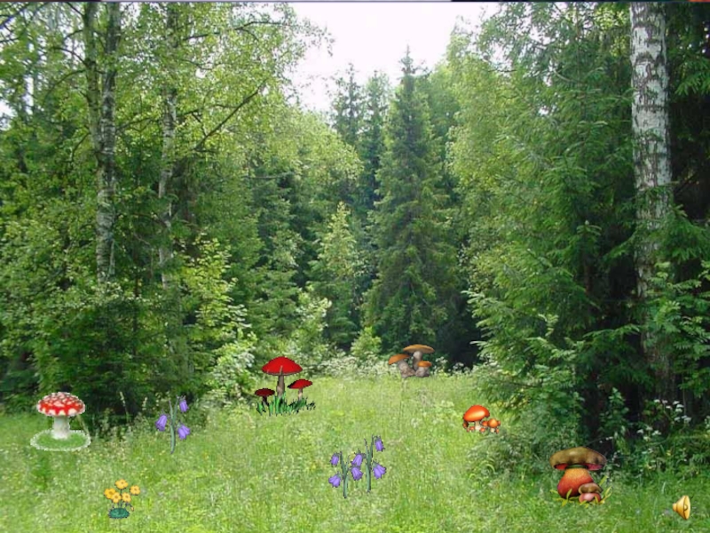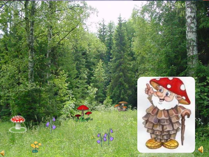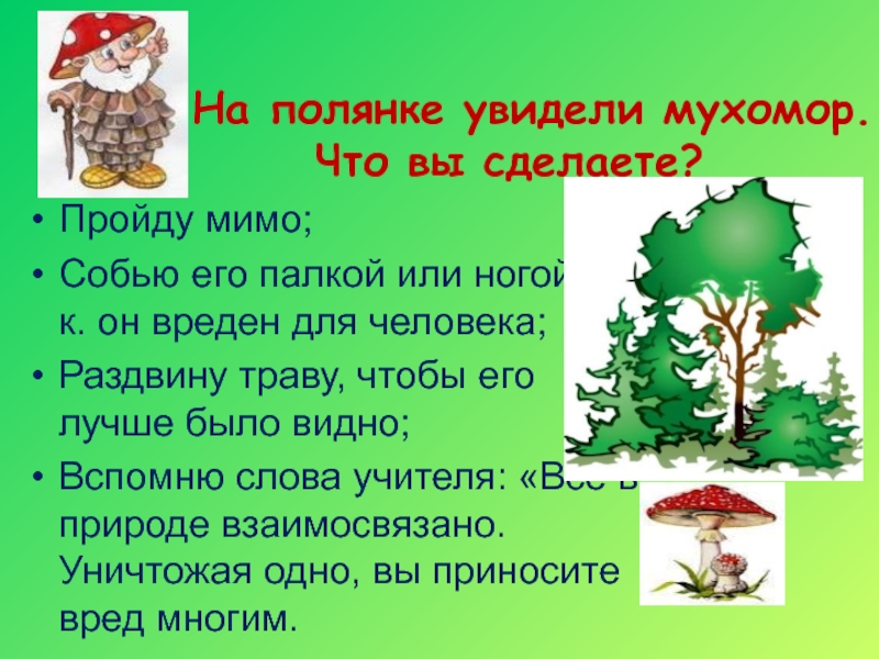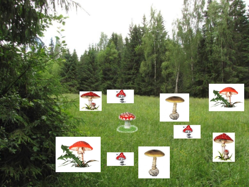 2. На полянке увидели мухомор.
