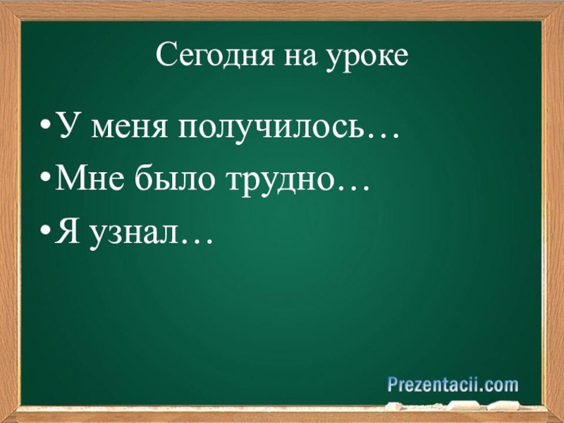 Сегодня на урокеУ меня получилось…Мне было трудно…Я узнал…