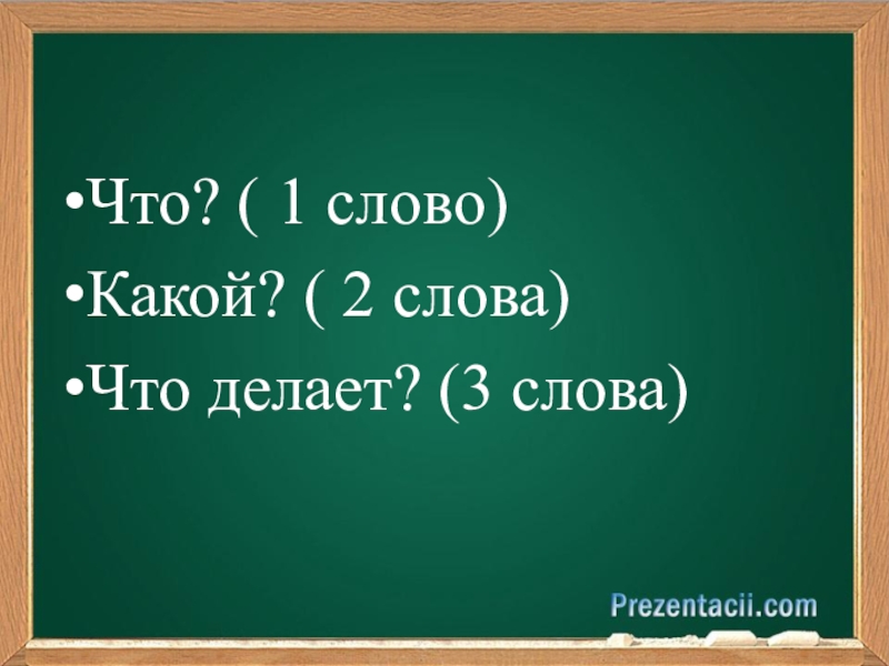 Что? ( 1 слово)Какой? ( 2 слова)Что делает? (3 слова)