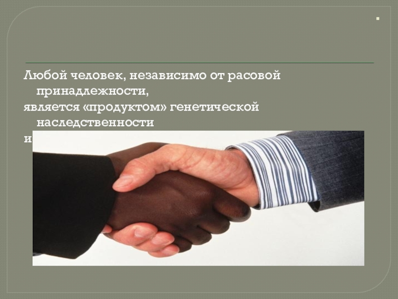 .Любой человек, независимо от расовой принадлежности, является «продуктом» генетической наследственности и социальной среды.