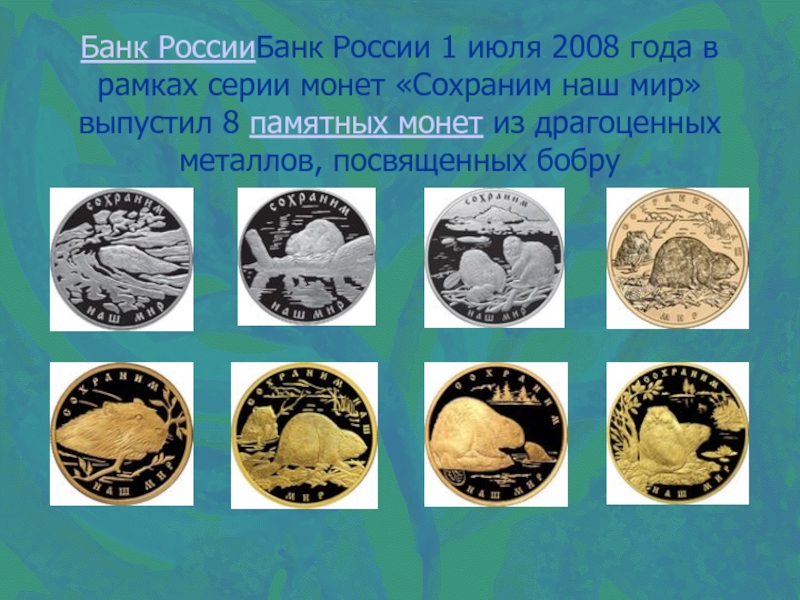 «Сохраним наш мир» выпустил 8 памятных монет из драгоценных металлов, посвященных бобру