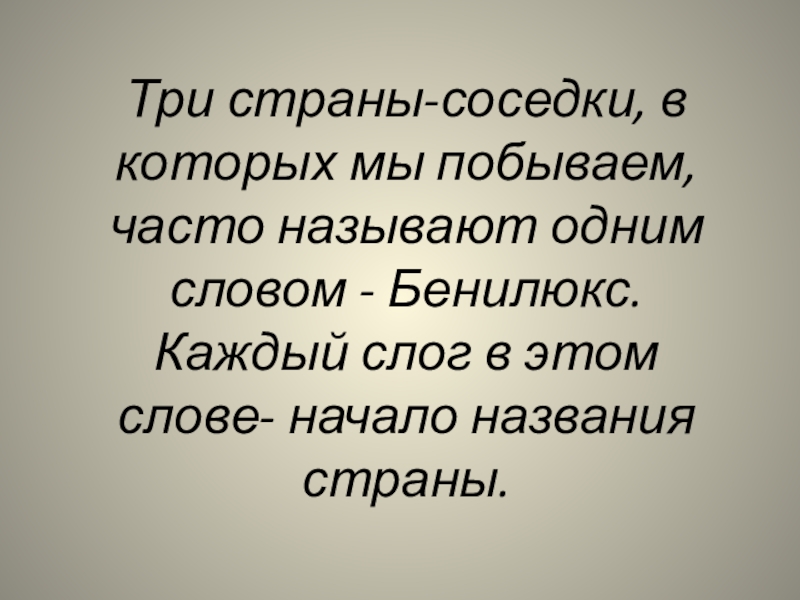 Бенилюкс. Каждый слог в этом слове- начало названия страны.