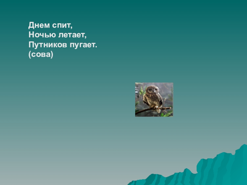 Слайд 8Днем спит, Ночью летает, Путников пугает. (сова)