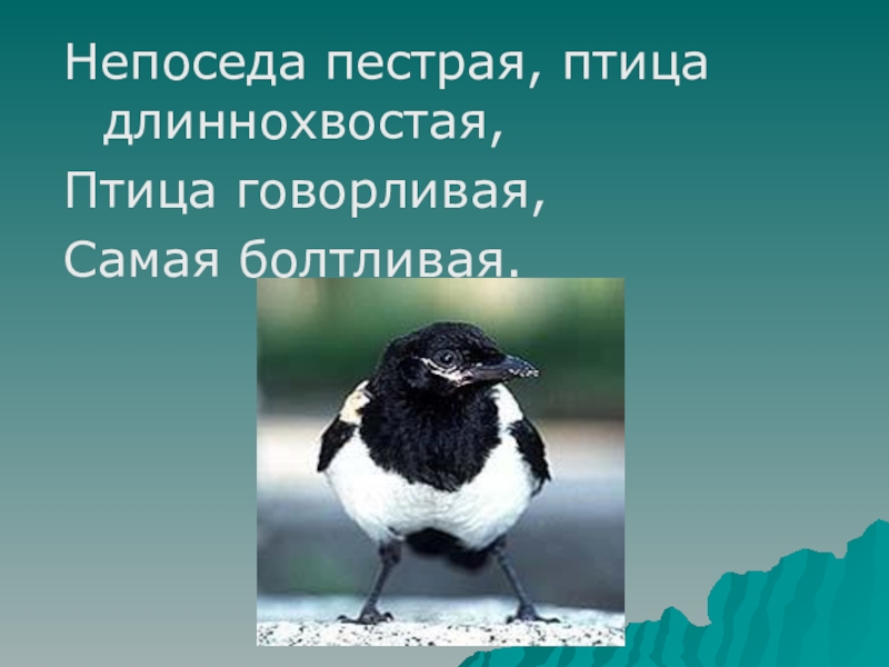 Непоседа пестрая, птица длиннохвостая,Птица говорливая,Самая болтливая.