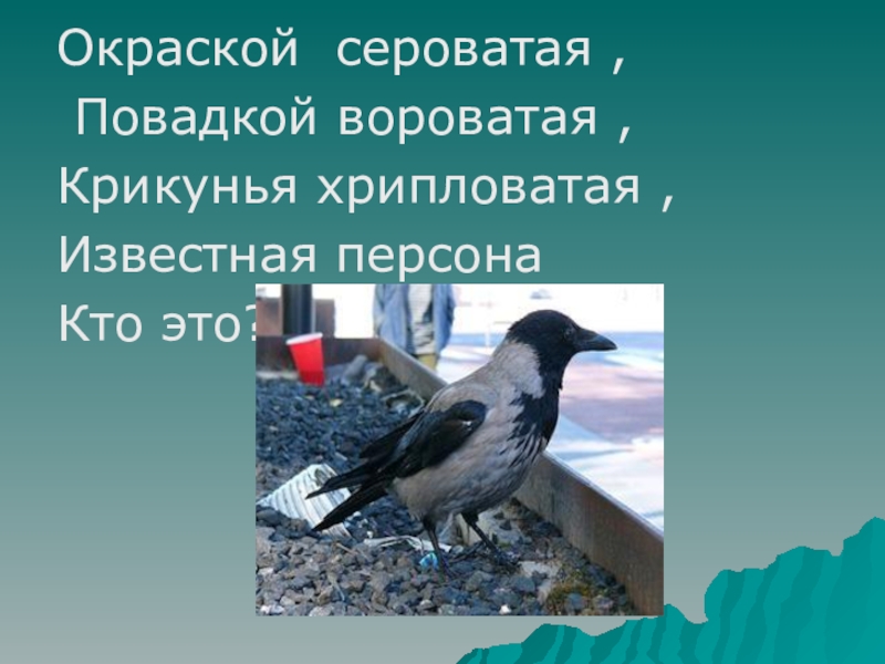 Окраской сероватая , Повадкой вороватая , Крикунья хрипловатая ,Известная персона Кто это?