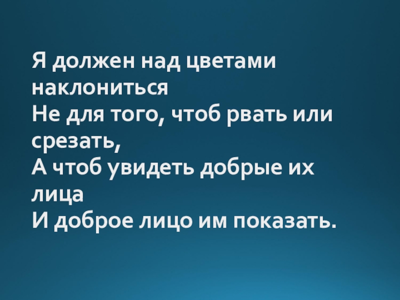 Слайд 10 Я должен над цветами наклониться Не для того, чтоб рвать или срезать, А