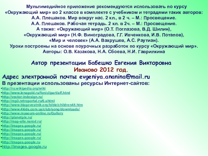 А также: «Окружающий мир» (О.Т. Поглазова, В.Д. Шилин),
