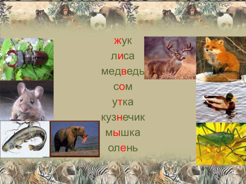 Распределите животных по группам. звери птицы насекомые земноводные пресмыкающиеся