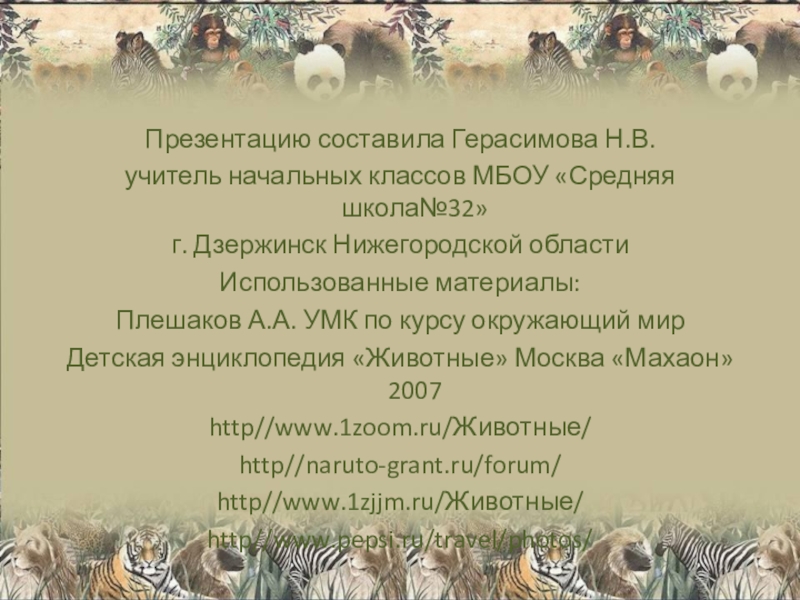 Презентацию составила Герасимова Н.В.учитель начальных классов МБОУ «Средняя школа№32»г. Дзержинск Нижегородской областиИспользованные материалы:Плешаков А.А. УМК по курсу