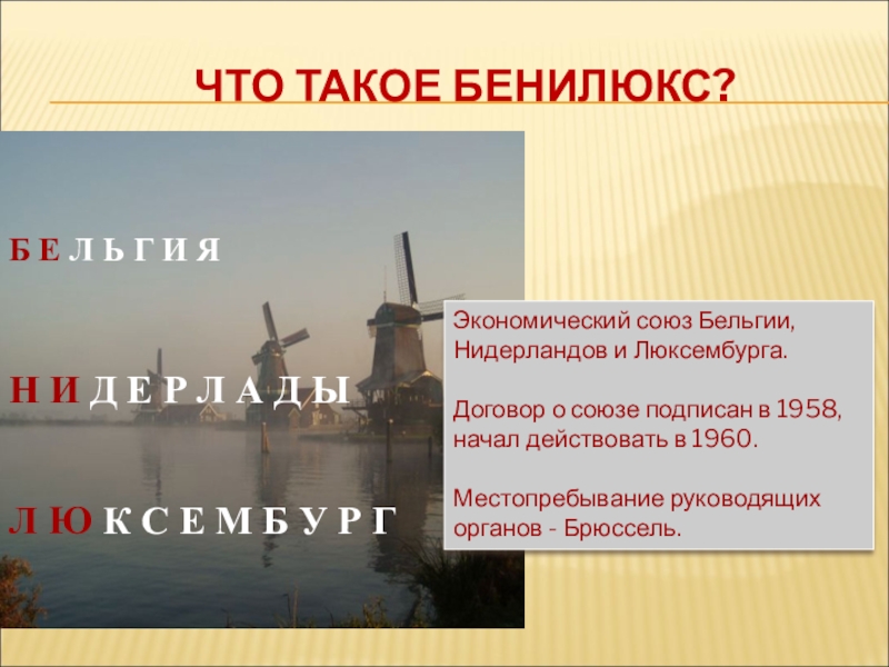 Экономический союз Бельгии, Нидерландов и Люксембурга.