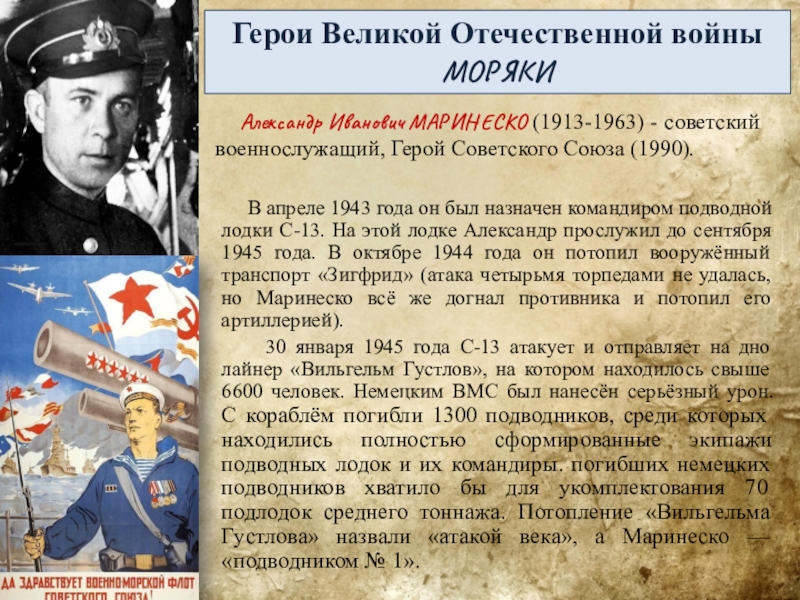 Александр Иванович МАРИНЕСКО (1913-1963) - советский военнослужащий, Герой Советского Союза (1990).