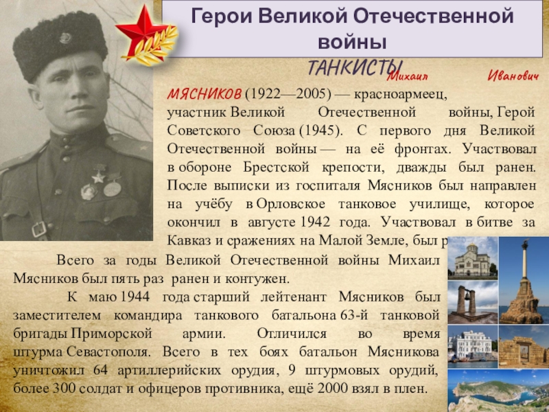 Всего за годы Великой Отечественной войны Михаил Мясников был пять раз ранен и контужен.