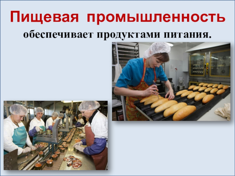 Пищевая промышленностьобеспечивает продуктами питания.
