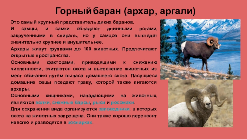 Основными хищниками, нападающими на животных, являются волки, снежные барсы, рыси и росомахи.