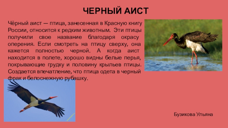 Чёрный аист — птица, занесенная в Красную книгу России,