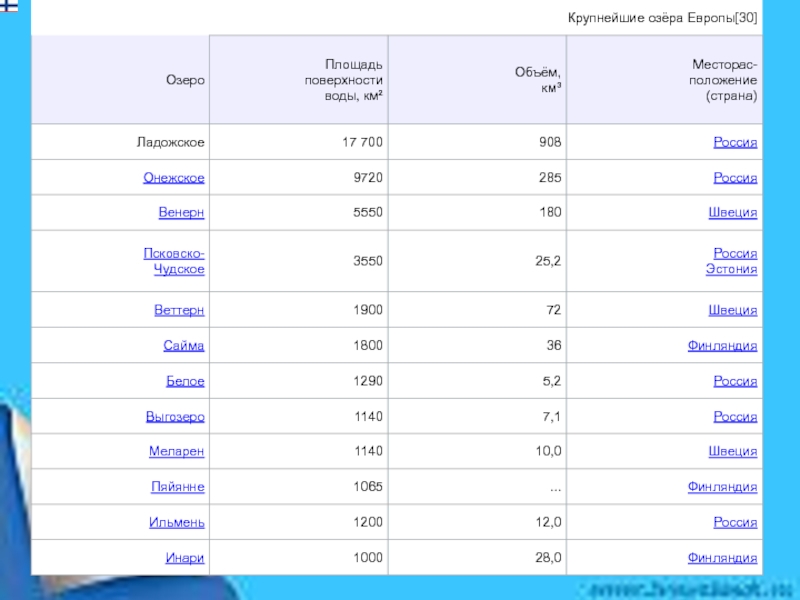 Презентация, доклад к уроку окружающего мира Крупнейшие озёра России.