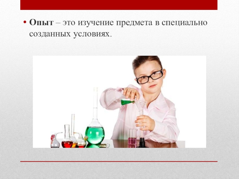 Слайд 7Опыт – это изучение предмета в специально созданных условиях.