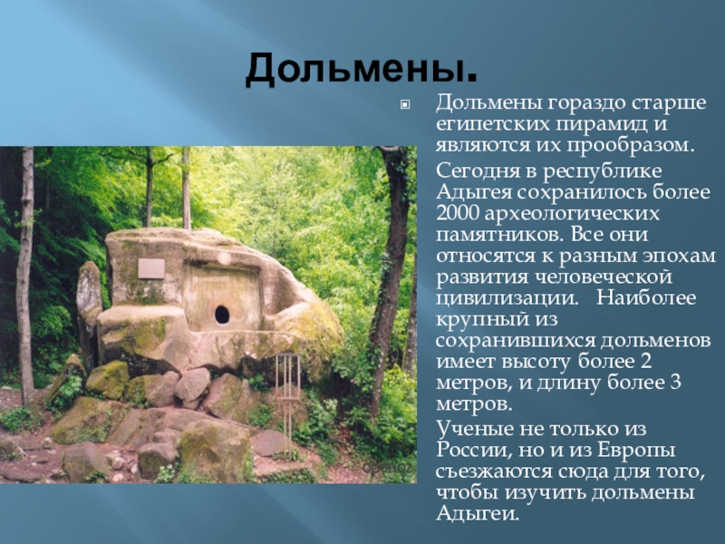 Ученые не только из России, но и из Европы съезжаются сюда для того, чтобы изучить дольмены Адыгеи.