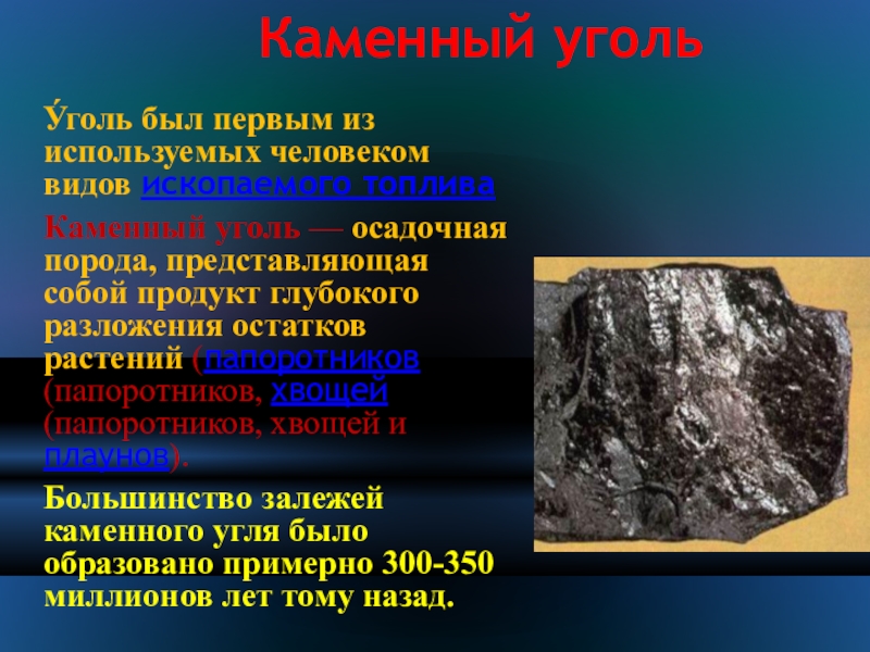 У́голь был первым из используемых человеком видов ископаемого топлива