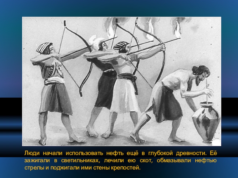 Слайд 20Люди начали использовать нефть ещё в глубокой древности. Её зажигали в