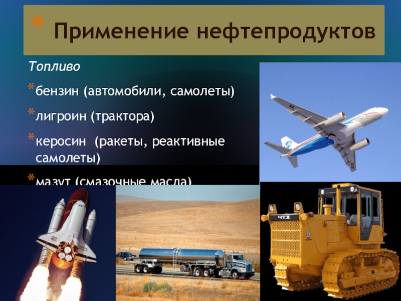 Слайд 28 Применение нефтепродуктов