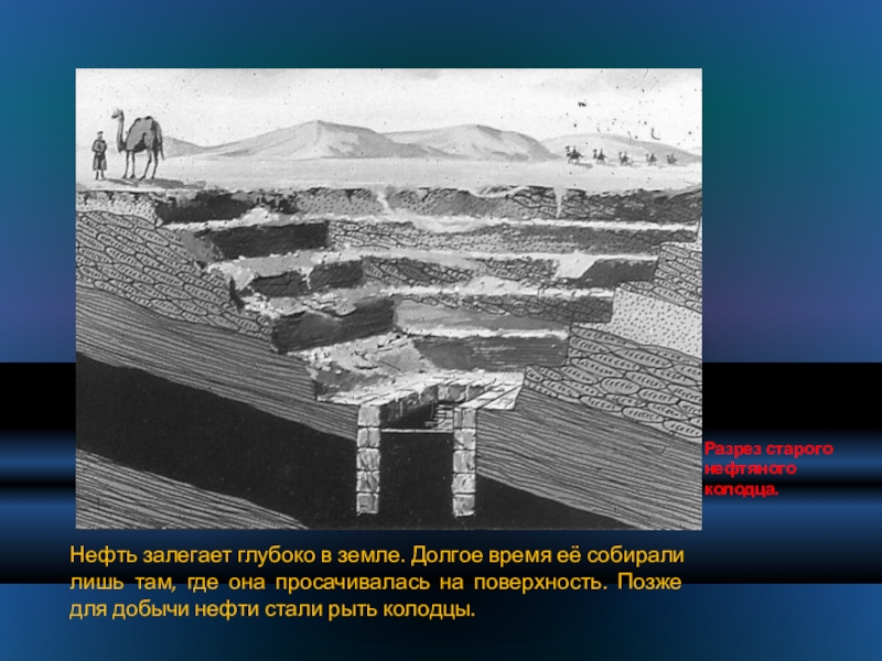 Слайд 21Нефть залегает глубоко в земле. Долгое время её собирали лишь там,