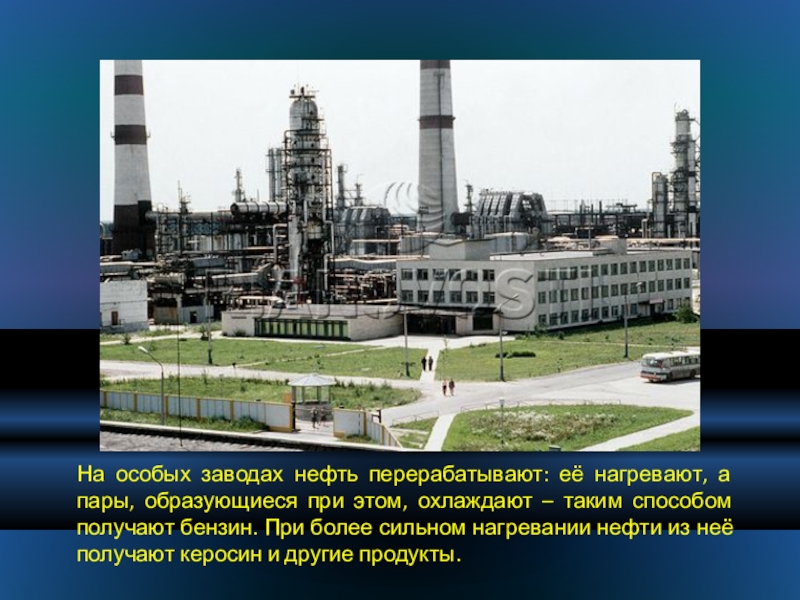 Слайд 26На особых заводах нефть перерабатывают: её нагревают, а пары, образующиеся при