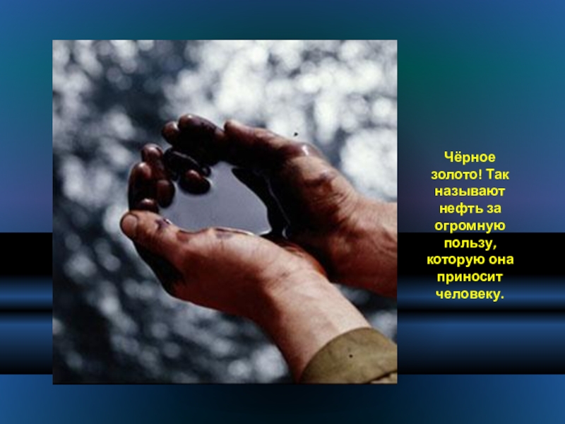 Слайд 19Чёрное золото! Так называют нефть за огромную пользу, которую она приносит