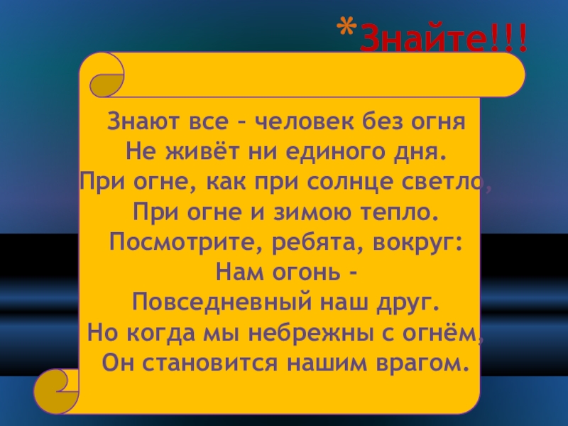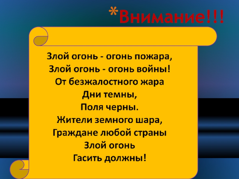 Слайд 45Огонь - наш враг