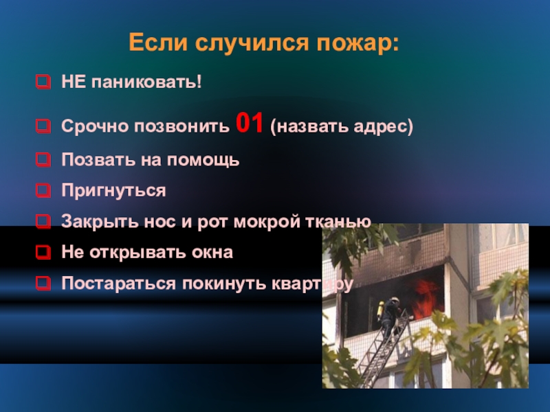 Слайд 51Если случился пожар: