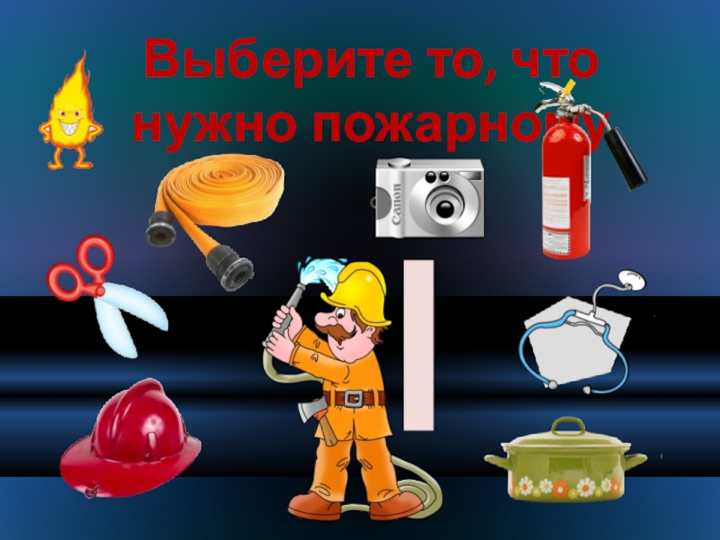Слайд 52Выберите то, что нужно пожарному