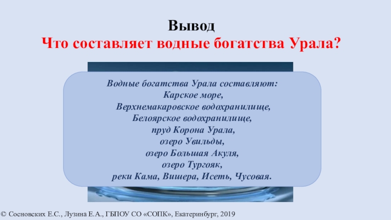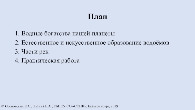 © Сосновских Е.С., Лузина Е.А., ГБПОУ СО «СОПК», Екатеринбург, 2019