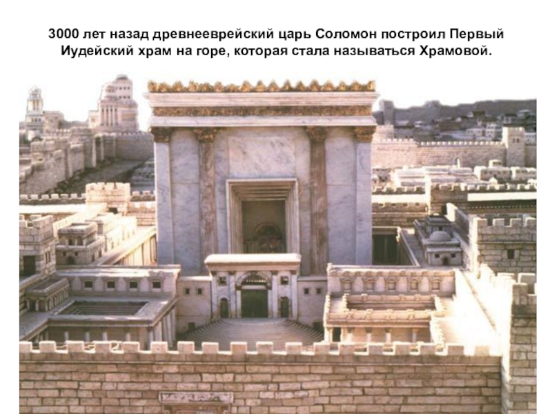 Слайд 33000 лет назад древнееврейский царь Соломон построил Первый Иудейский храм на