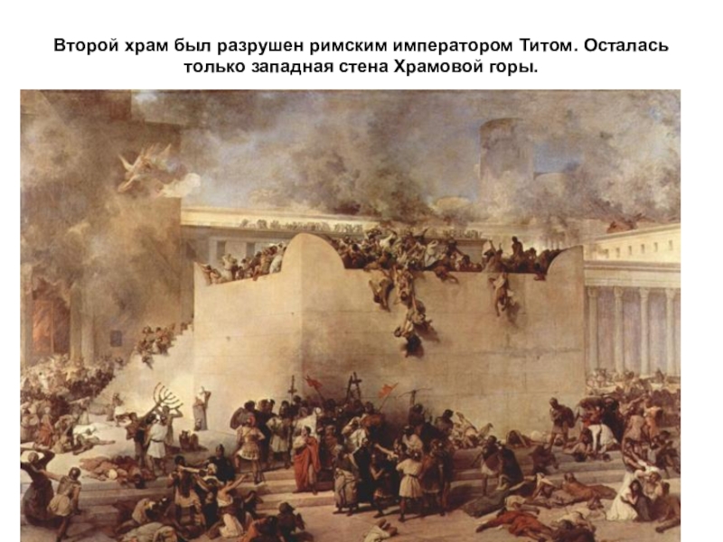 Слайд 5Второй храм был разрушен римским императором Титом. Осталась только западная стена