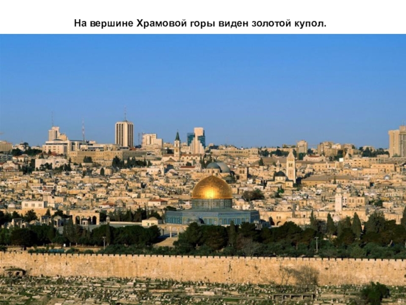 Слайд 8На вершине Храмовой горы виден золотой купол.