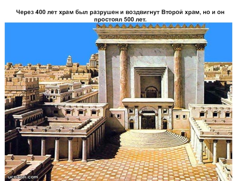 Слайд 4Через 400 лет храм был разрушен и воздвигнут Второй храм, но