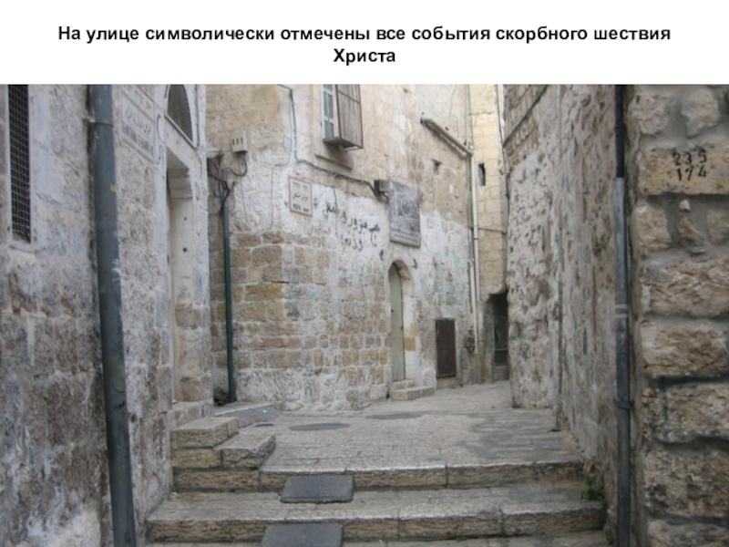 Слайд 18На улице символически отмечены все события скорбного шествия Христа