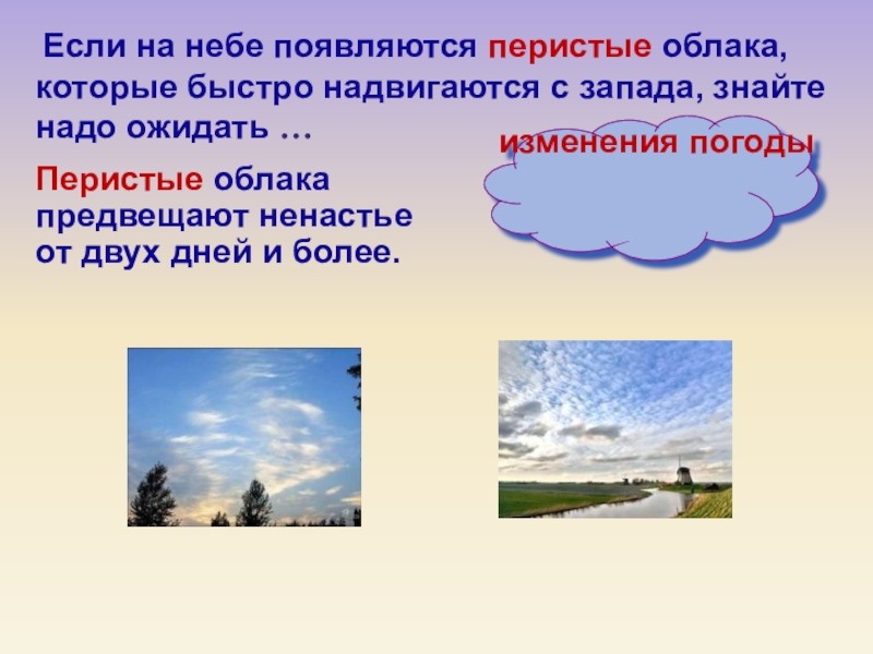 Перистые облака предвещают ненастье