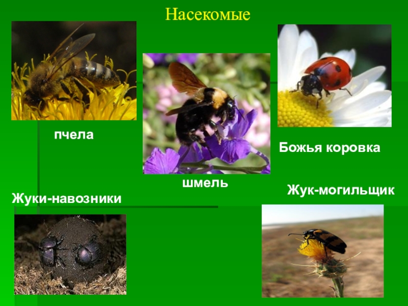 НасекомыепчелаБожья коровкашмельЖуки-навозники Жук-могильщик