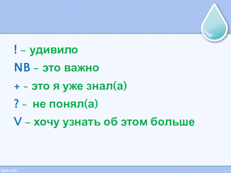 ! – удивилоNB – это важно+ - это я уже знал(а)? - не понял(а)V – хочу узнать