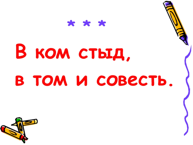 * * *В ком стыд, в том и совесть.
