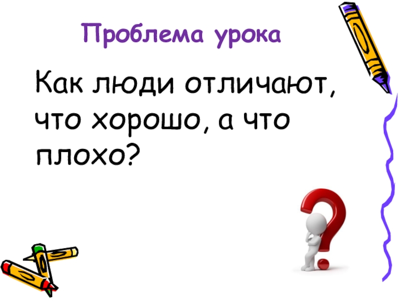 Проблема урокаКак люди отличают, что хорошо, а что плохо?