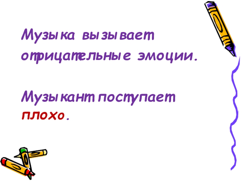 Музыка вызывает отрицательные эмоции. Музыкант поступает плохо.