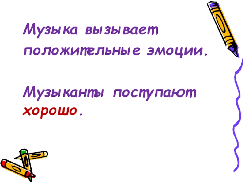 Музыка вызывает положительные эмоции. Музыканты поступают хорошо.