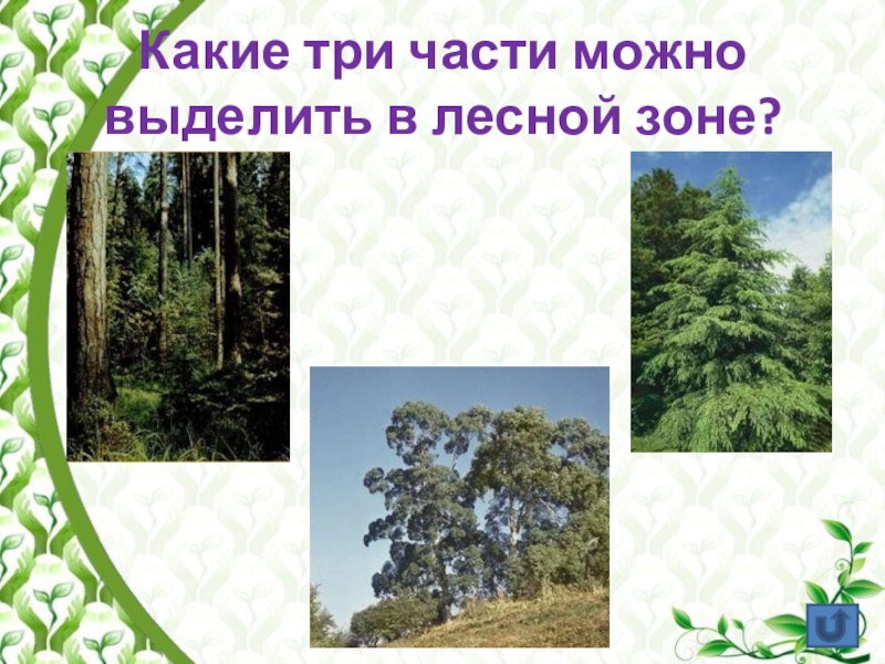 Слайд 5Какие три части можно выделить в лесной зоне?